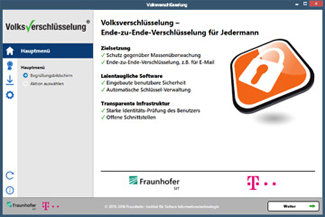Ende-zu-Ende-Verschlüsselung für alle: Das Fraunhofer-Institut für Sichere Informationstechnologie SIT und die Deutsche Telekom starten am 29. Juni die Volksverschlüsselung. Sie besteht aus der vom Fraunhofer SIT entwickelten benutzerfreundlichen Software und der dazugehörigen Infrastruktur, die von der Deutschen Telekom in einem Hochsicherheitsrechenzentrum betrieben wird. Mit der Volksverschlüsselung können Windows-Nutzer die eigenen Rechner mit wenigen Klicks verschlüsselungsfähig machen. Die Software steht ab sofort unter www.volksverschluesselung.de zum kostenlosen Download zur Verfügung. Dort wird auch der Quelltext der Software einsehbar sein.