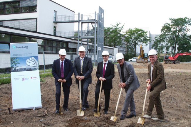 Fraunhofer SIT erhält Erweiterungsbau für 18 Millionen Euro – Spatenstich mit Wissenschaftsstaatssekretär Ingmar Jung, Darmstadts Oberbürgermeister Jochen Partsch und Fraunhofer-Vorstand Dr. Alexander Kurz