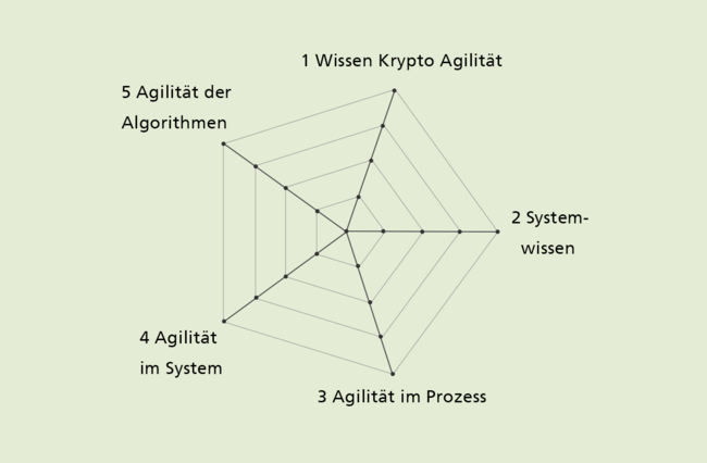 Auf dem Weg zur Umsetzung von Krypto-Agilität unterscheiden wir fünf Handlungsfelder: